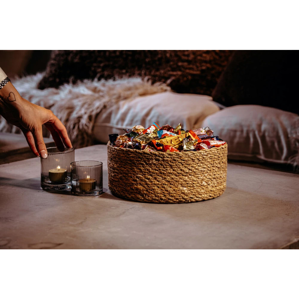 Our Christmas baskets are made from invasive seaweed, which is a beautiful and sustainable material. The seaweed is harvested and woven into beautiful baskets, which we fill with our favorite mix of Riesen, Twix, Bounty, and more. A much-appreciated gift to give to your employees to celebrate Christmas! The Christmas basket fits perfectly on the kitchen table so that everyone can have a treat or two. Or fifteen.