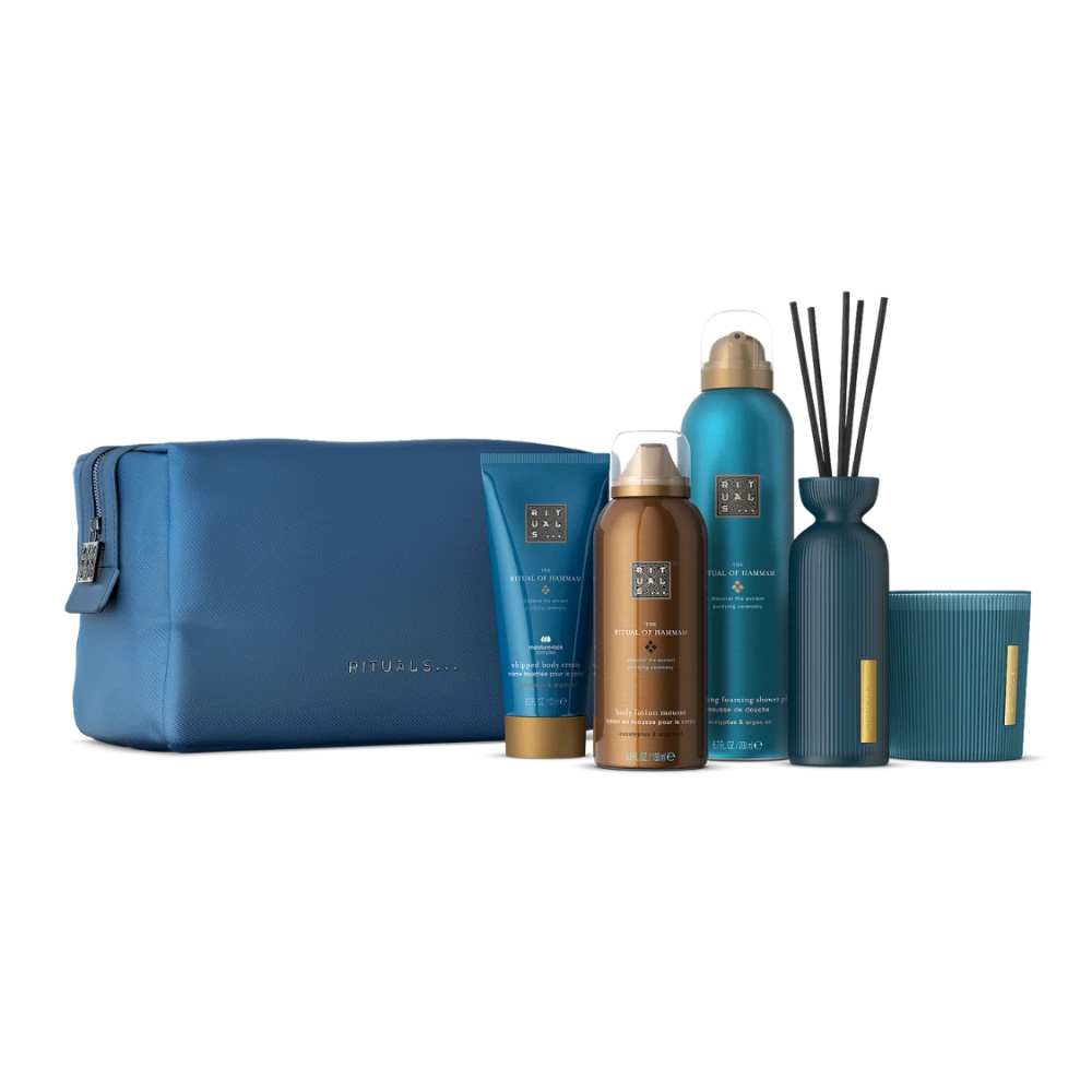 This large gift set contains the ultimate purifying routine to create the perfect spa vibe at home. With nourishing and purifying products based on eucalyptus, argan oil and rosemary, this is the ideal way to experience the best of The Ritual of Hammam. Inside, discover a shower foam, body cream, body lotion mousse, mini fragrance sticks and scented candle. After unwrapping, you can use the complimentary pouch when travelling.